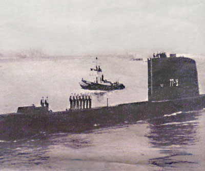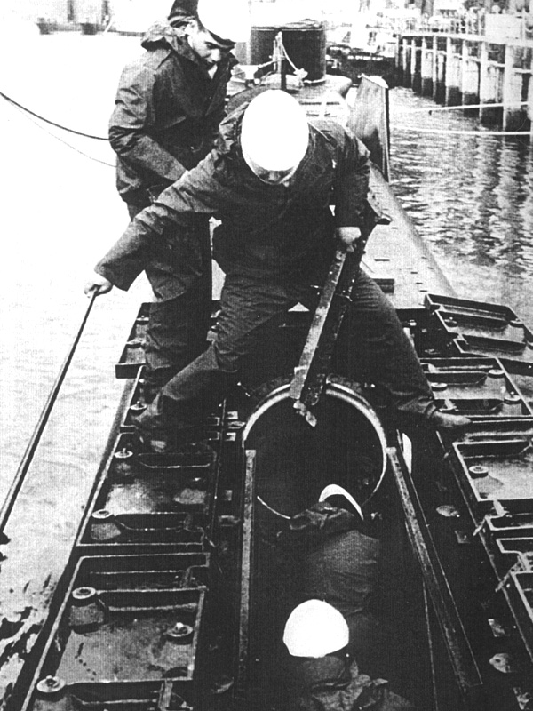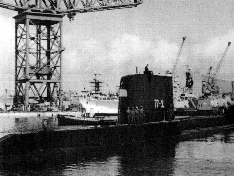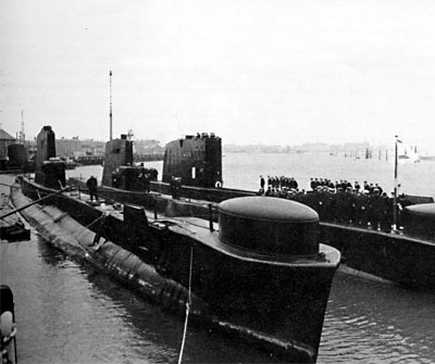 הצוללת בנמל הבריטי פורטסמות לפני היציאה